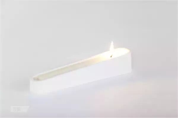 这是一个特别的烛台,设计师在经历了成百上千次的失败后才设计出这样一个烛台让蜡烛可以水平地燃烧。Eventide(黄昏)意味着一天的结束,沿着水平线燃烧的火焰和地平线上的日落有着相同之处。