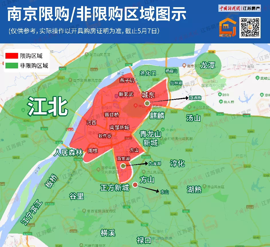 江宁、浦口、栖霞、雨花台均有部分区域进入不限购范围