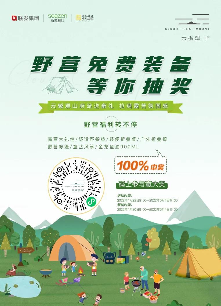 来一场说走就走的野营,在万物轻语的呢喃中休憩。云樾观山府,筹备了幸运大转盘活动,活动期间每人每天都有一次初始机会,帐篷、折叠桌椅等野营装备蓄势以待,参与小程序抽奖即得惊喜。前往售楼处领完好礼,即刻便能去周边野营,轻松惬意。