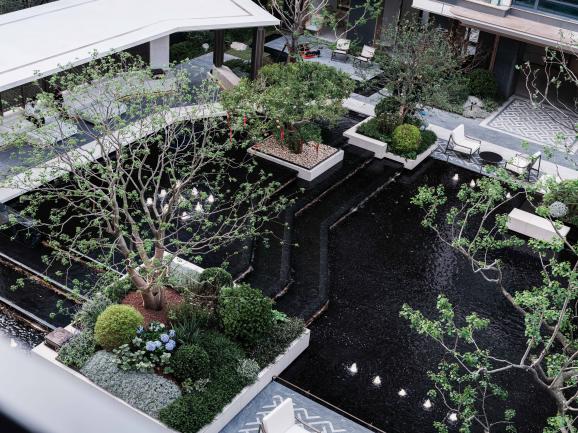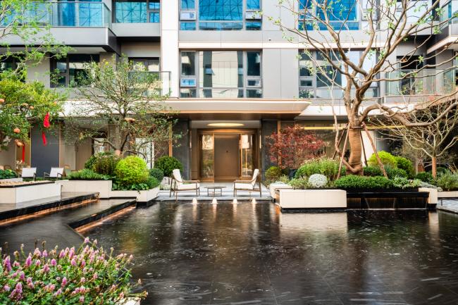 花是自然的符号,也是美好生活的象征。本次示范区开放活动,江海和鸣以花为引,用美学构筑生活场景。走进示范区,目之所及绿意环绕,精心打造的入口水景花园,以茂密的树植掩映着四季时令花植,形成通透热烈的海派风格。约70米长的单面悬挑结构风雨连廊,为业主打造的专属归家礼序,连廊两侧,奢石与跌水潺潺相依,宛若一幅流动的江岸生活画卷徐徐展开。