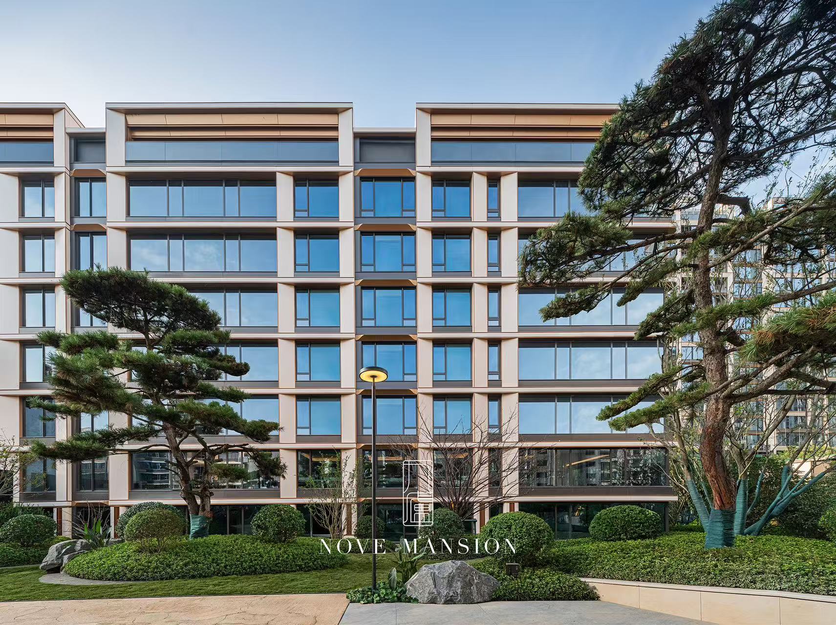 九庐从泰山千挑万选了6颗造型各异的百万级名贵松树,凝结自然精华,构建唯美松境。整个园林将松林意境、人文情境、生活逸境有机统一,筑就了一座沉浸自然共享、多元生活共生的“云丘花园”,让居者在繁华中邂逅自然。