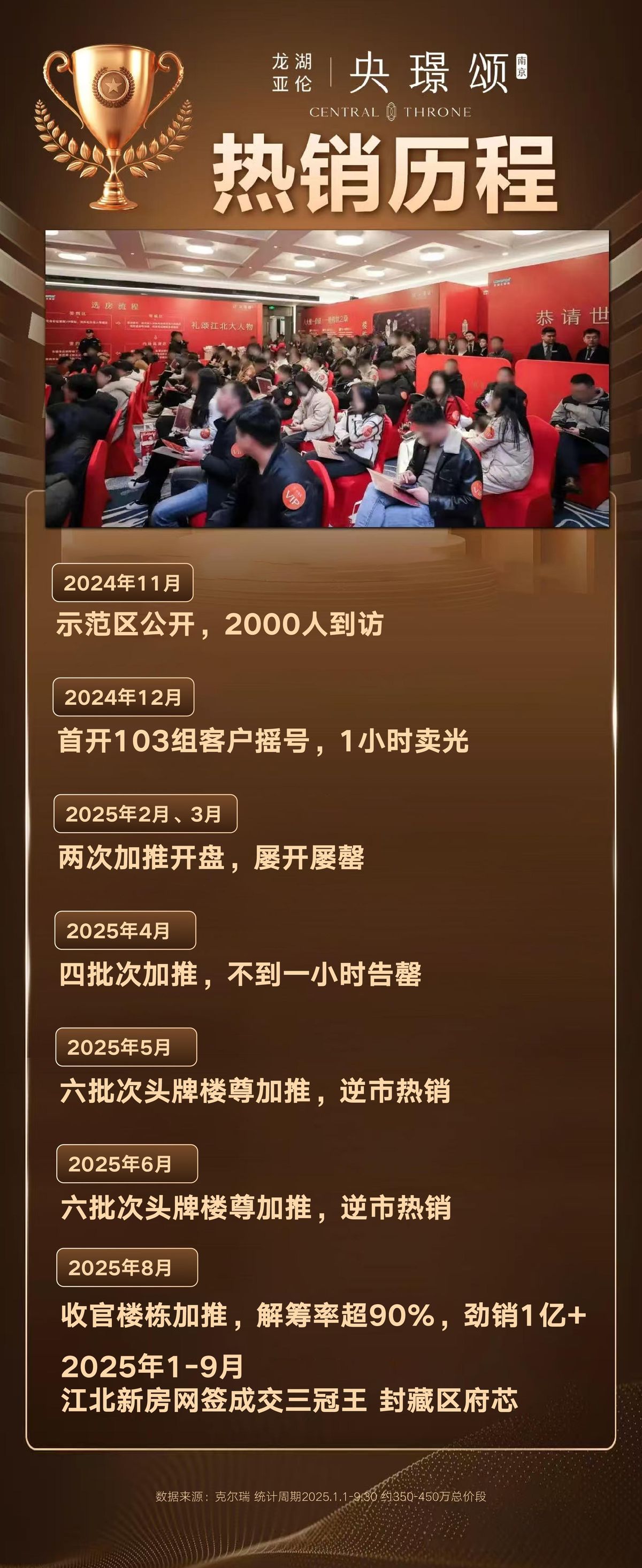 从2024年12月首开日光,到2025年七开七捷,再到国庆黄金周再续热销,龙湖亚伦·央璟颂以“实景兑现力”构筑信任基石。千万级示范区、四重泛会所、实体美学样板间、实景奢装地库……每一步皆以作品心态营造,让高端改善从“想象”走向“真实”。
