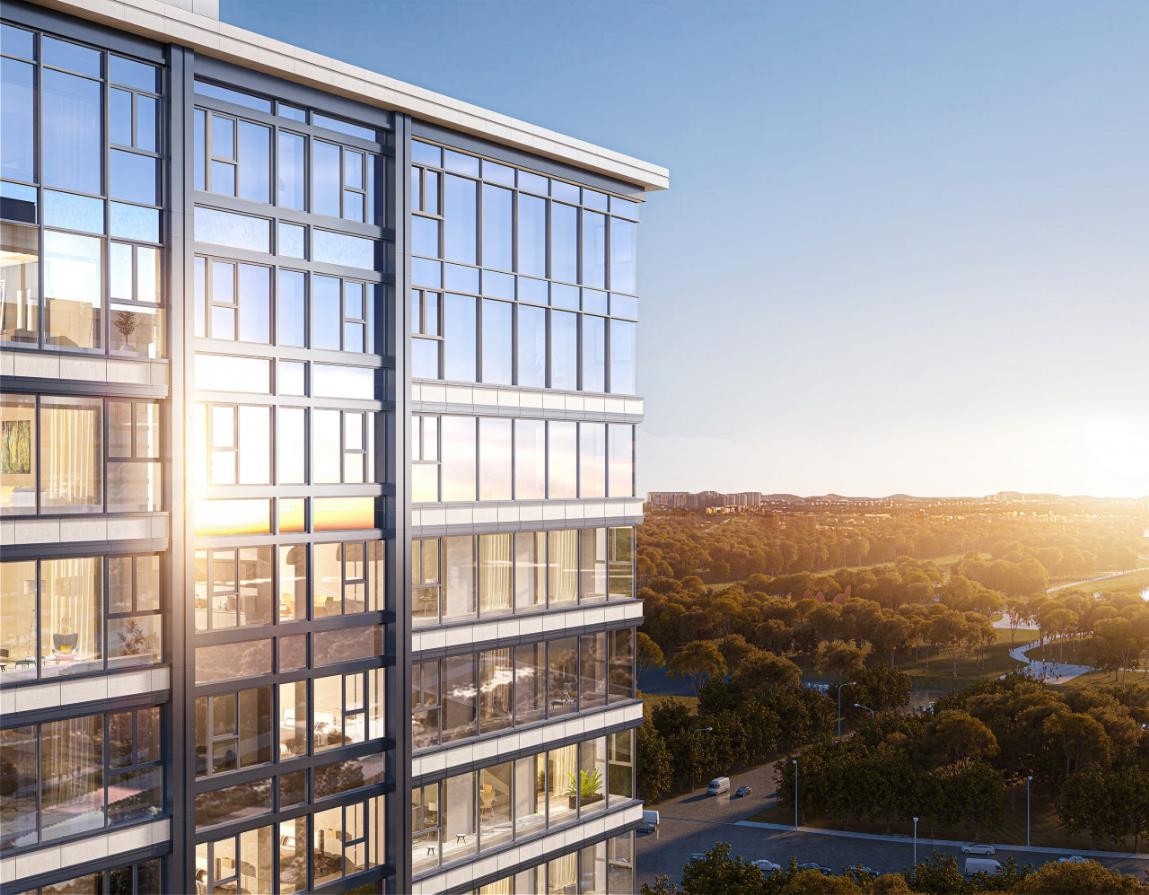 秉承致敬密斯•凡德罗「Less is more」的建筑语言,实现纯粹的“天幕镜面”,打造超前、独具未来感的建筑形象,整体高级质感爆棚,堪称全新美学模板!