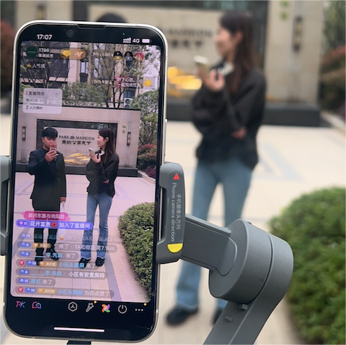 (无锡山水拾涧项目的两位主播在直播间讲解)