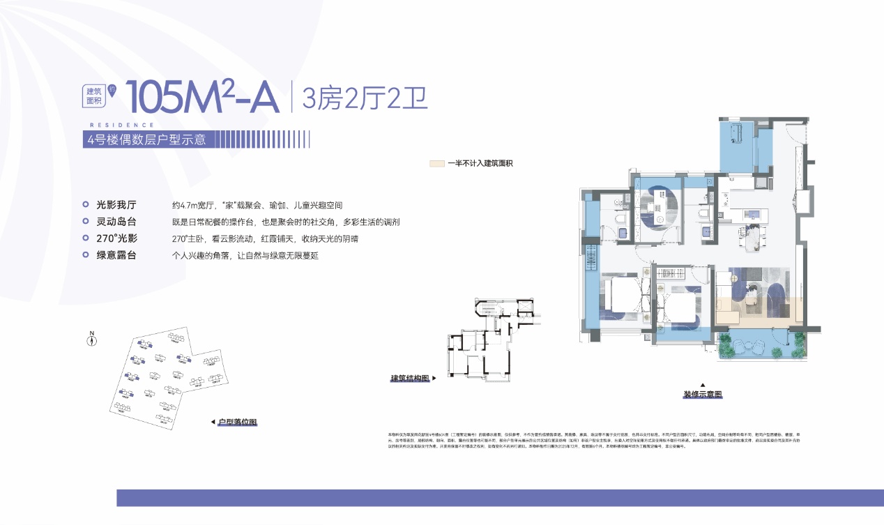 建面约105㎡创意样板间为效果展示,以实际交付为准